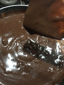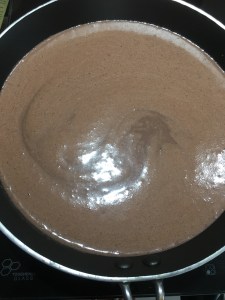. Now, filter this mixture through a sieve into a non stick pan and stir it till it becomes thick. It should become as thick as a chocolate ganache.