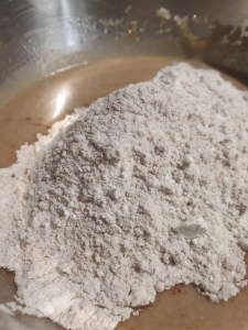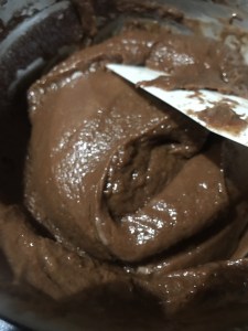 . Add the melted chocolate and the milk and mix it well. To this add the dry ingredients slowly in batches and fold them into the wet ingredients.