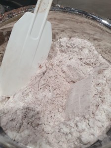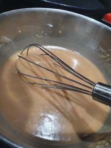 . Then, mix all the dry ingredients and make sure there are no lumps in the cocoa powder. Into this mixture, add 2 cups of milk gradually and whisk it till it becomes smooth.