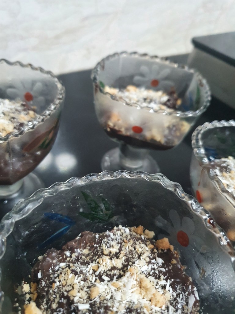 . Transfer it into serving bowls and garnish it with topping of your choice. You can use biscuit crumbs or chocolate chips and shaving of the chopped chocolate or a sprinkle of cocoa. Refrigerate it for about three to four hours and your pudding would be good to go.