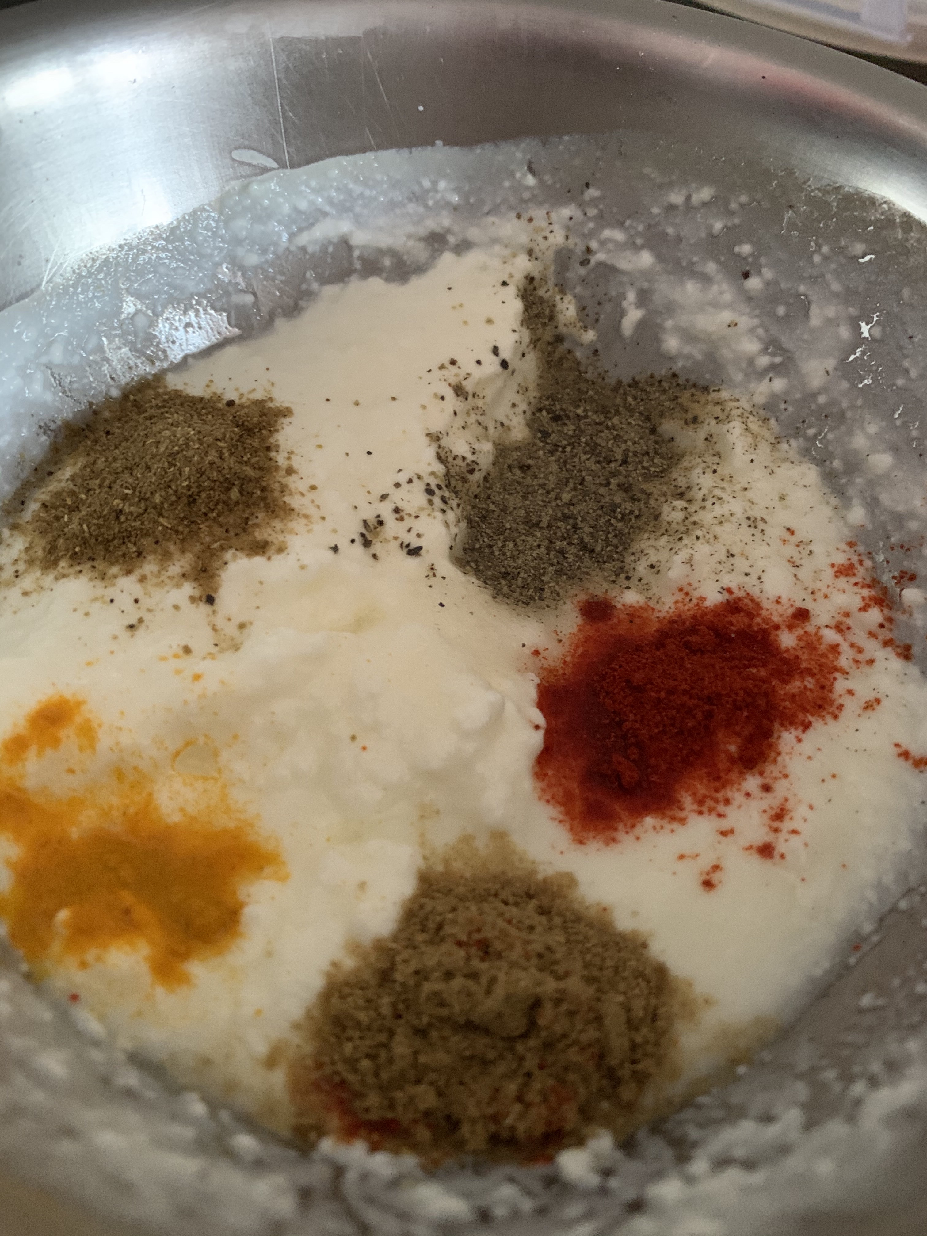 . First, whisk the curd to remove any lumps. Add the spices and give it a good mix till everything is combined. Add the salt as per your taste and then the paneer. Mix it and let it rest till 15-20 minutes.