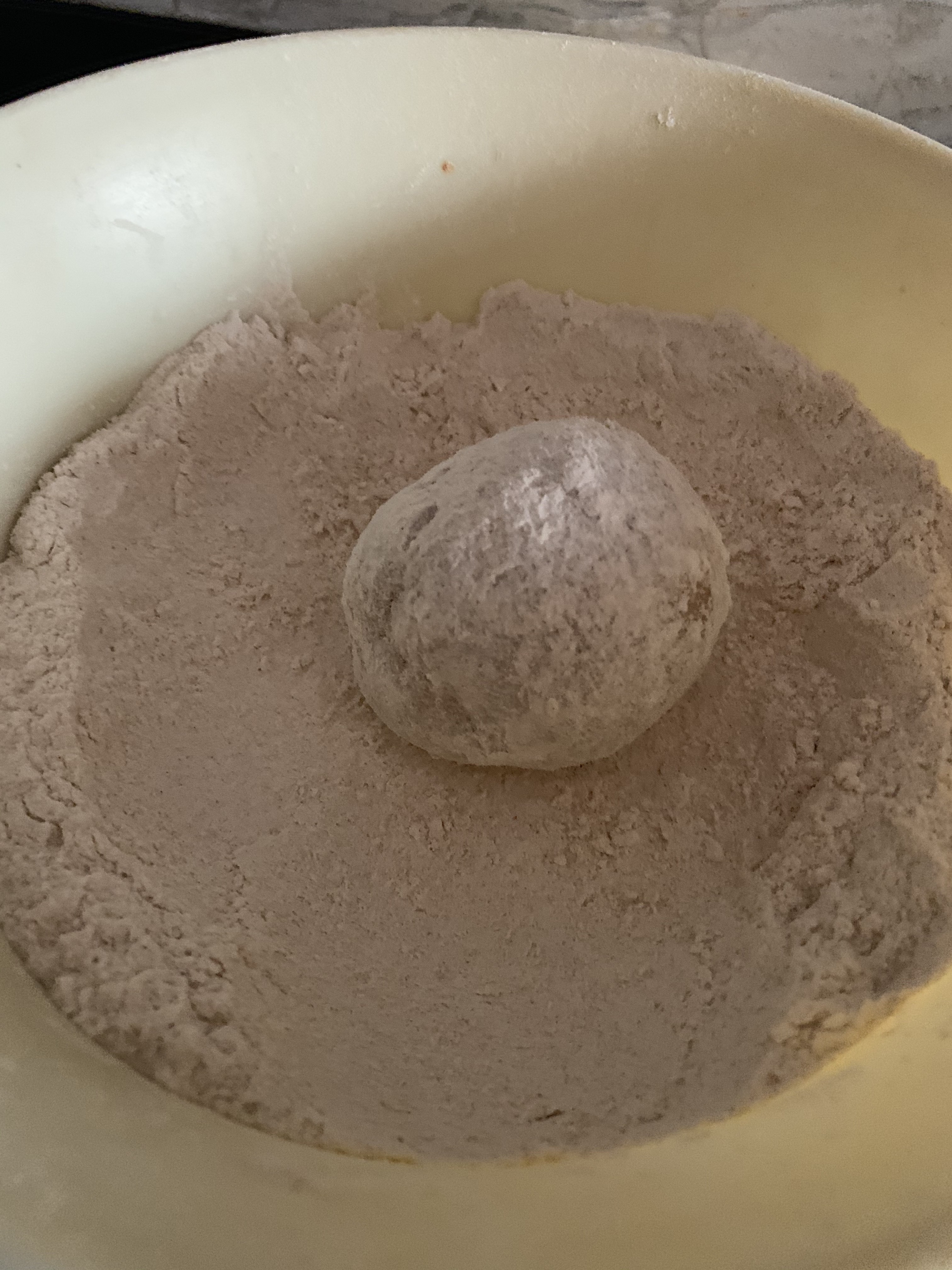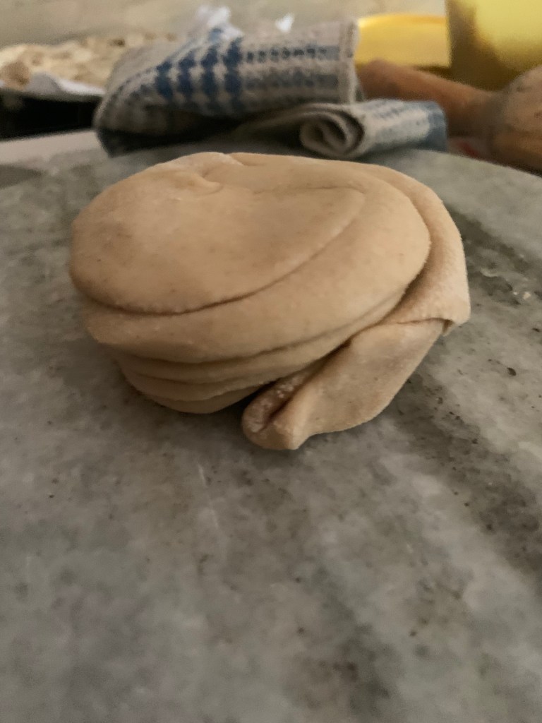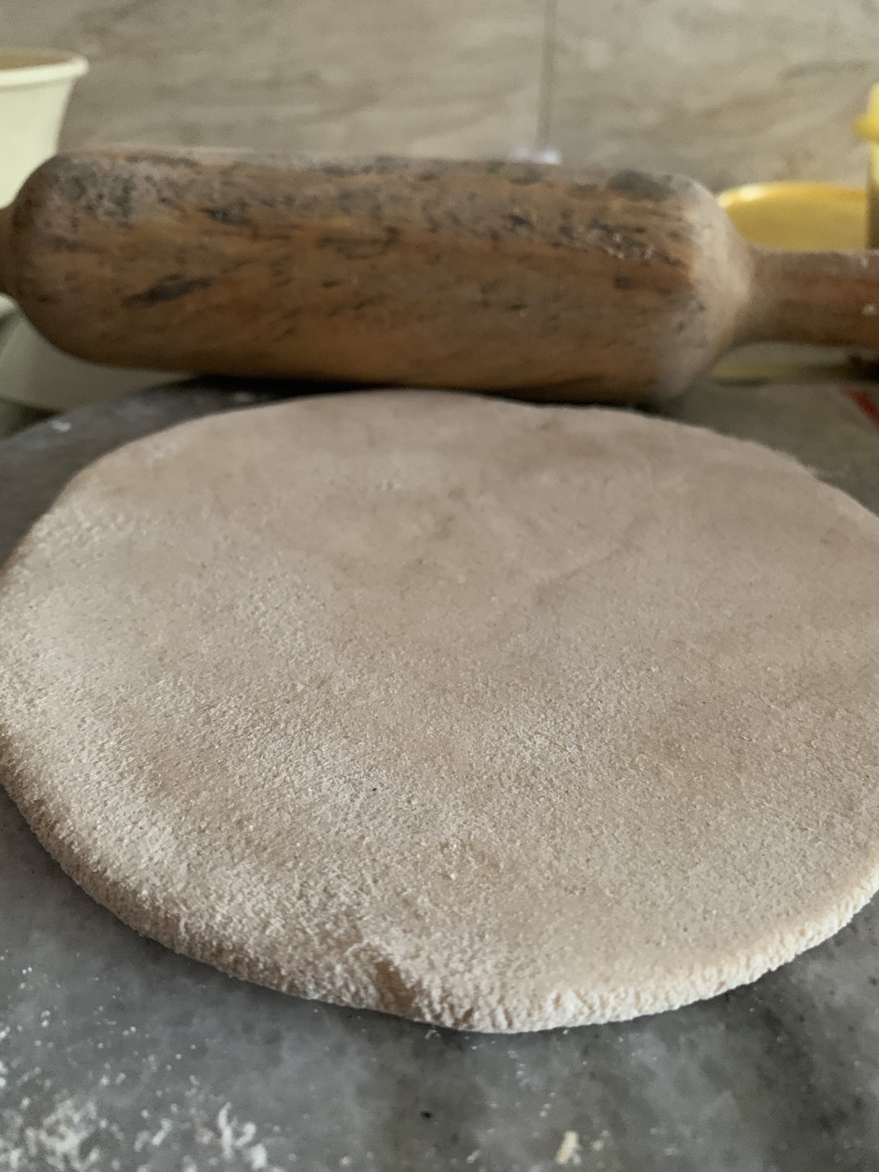 . First, make a medium textured dough out of atta and water. It shouldn’t be too soft and not too hard. The dough is like that of a chapatis dough.