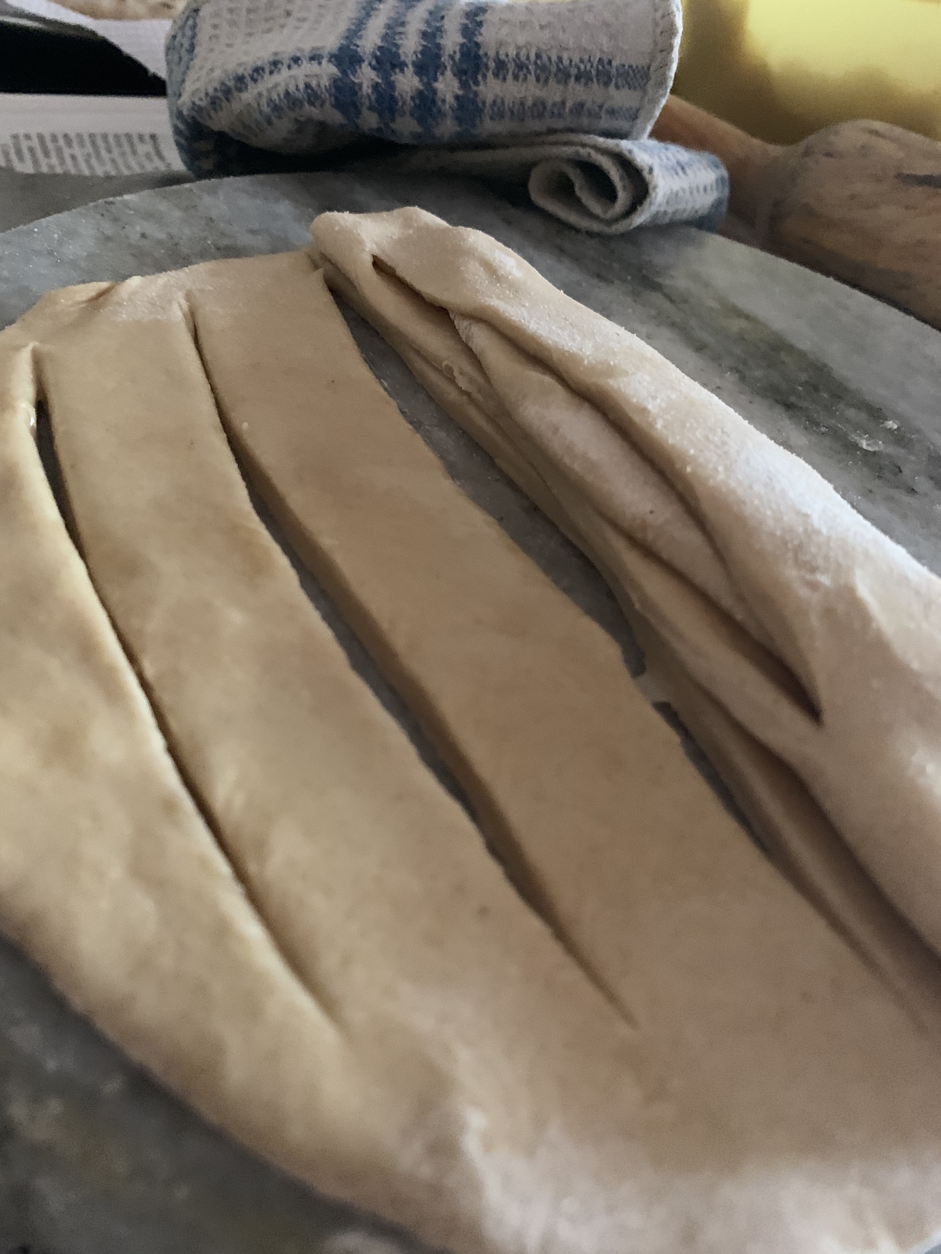 . With the help of a knife, cut this into lines from bottom to top leaving the ends free.