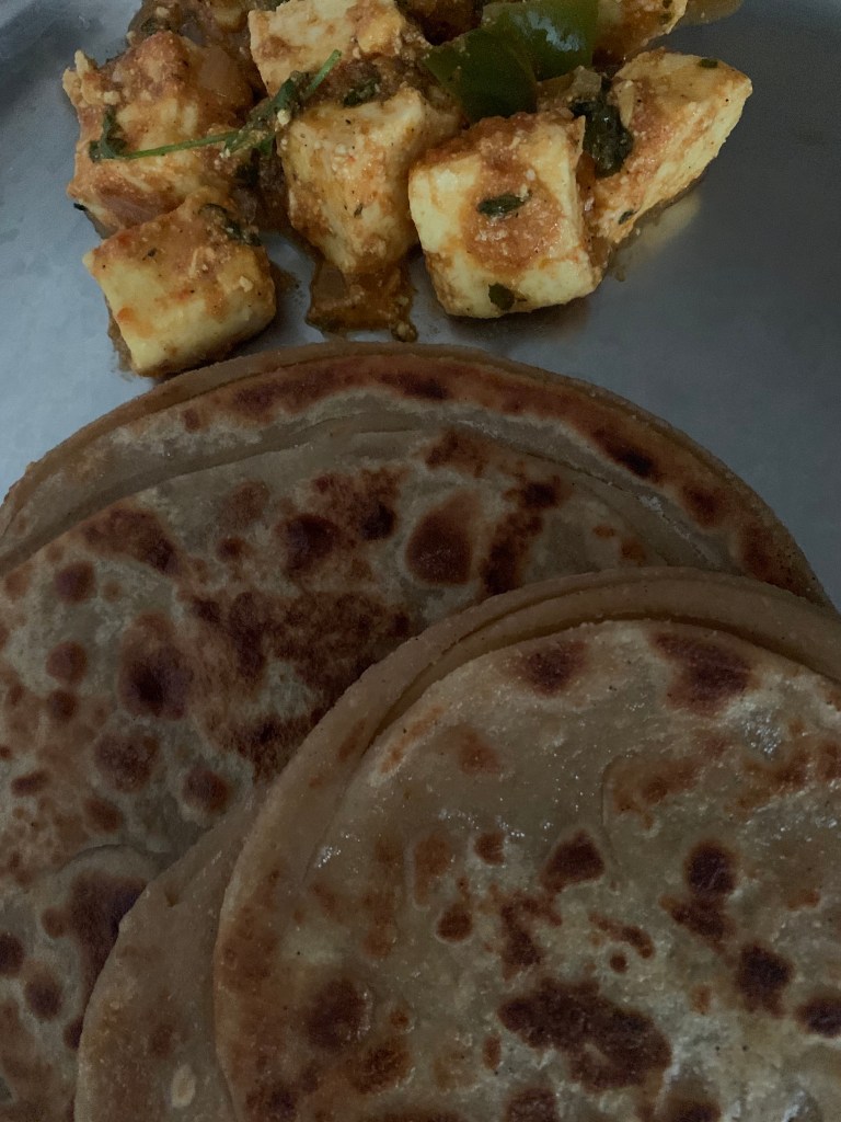Indian cuisine: Tawa paneer masala and Lachha parantha