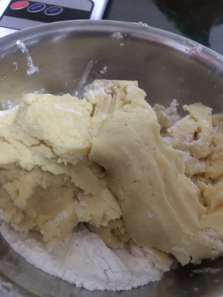 . First combine the khoya and maida vaguely and transfer it to marble board.