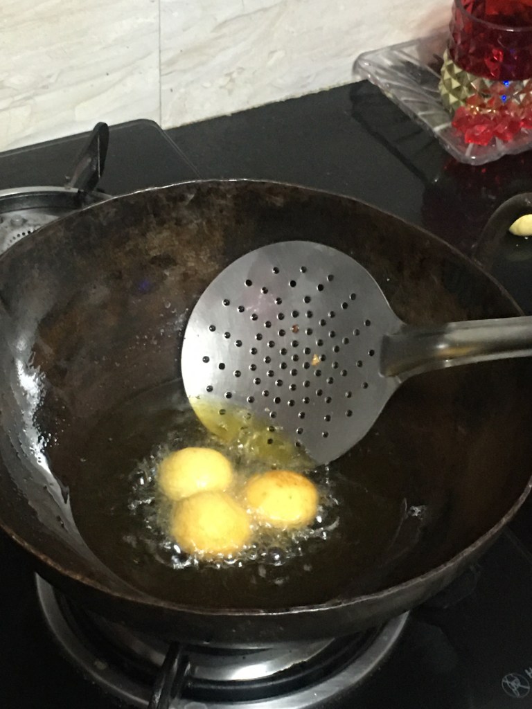 . My tip for you is that don’t fry all at once. Fry three at a time. And to get that even colour, keep moving the oil and not the jamuns.