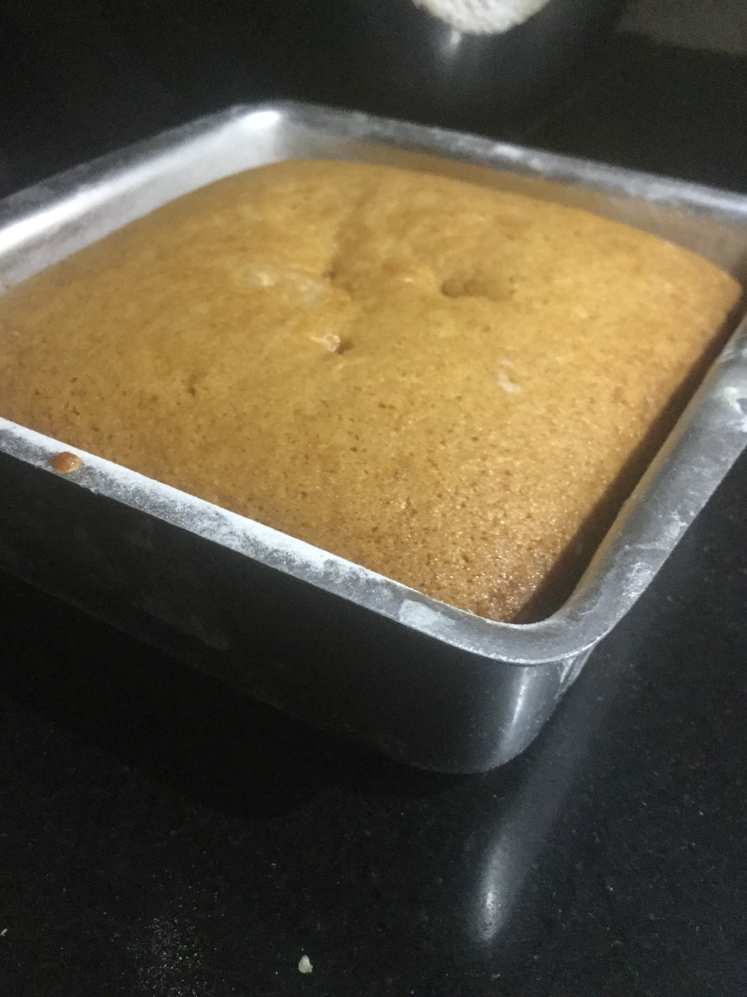 . Pour the batter in it and bake it at 180*C for 30 minutes . The time may vary and check the cake at 25 minutes. Don’t open it too much or the heat would escape and the cake would not rise.