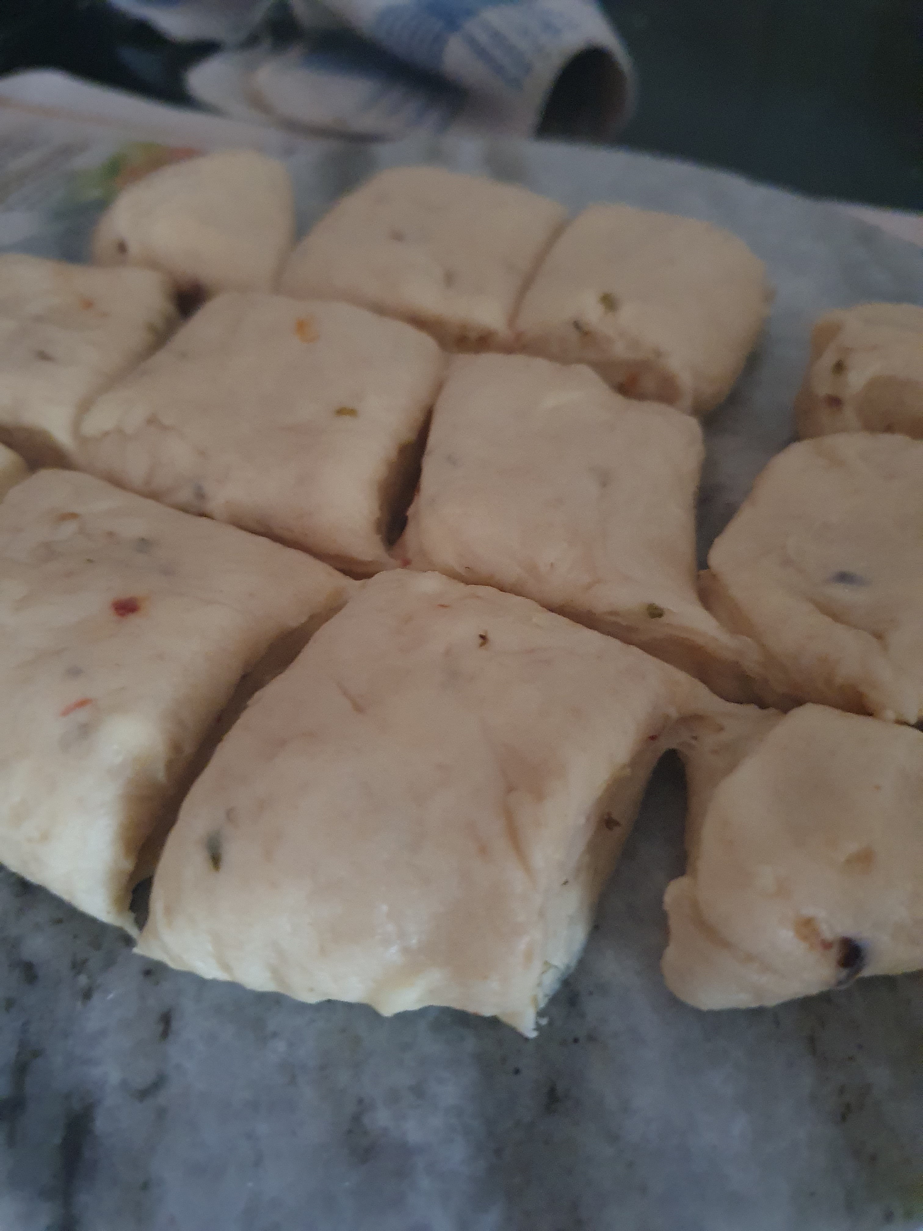 Note: the healthy part is that instead of using butter and full flour we are using oil and combination of flour and wheat flour. Usually in breads like these , to make them soft, butter is used.