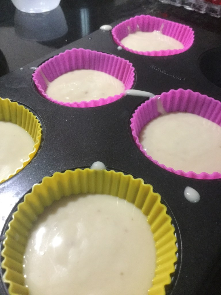 . Fill almost 3/4 to 1/2 of the liners. Bake this at 170*C for for 15-20 minutes. Let them cool at least 1 hour at room temperature.