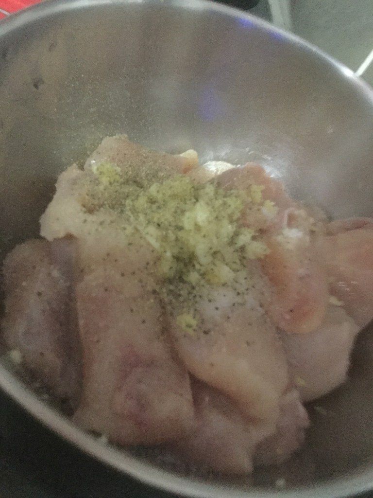 . First, wash the chicken and add it to a bowl. Then add the ginger garlic paste and the seasoning.