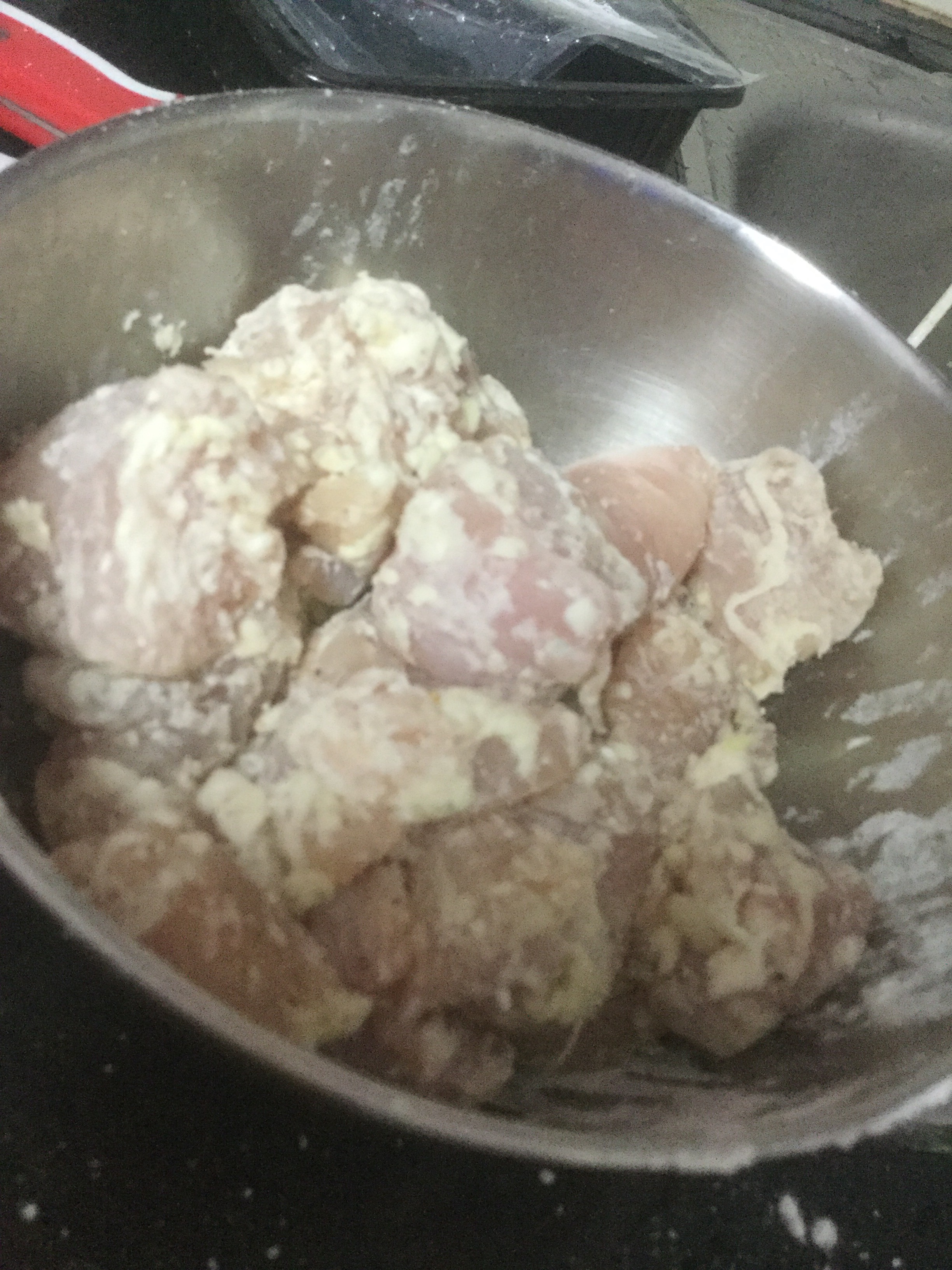 . Let this marinate for 20-30 minutes so that the chicken is not bland from the inside.