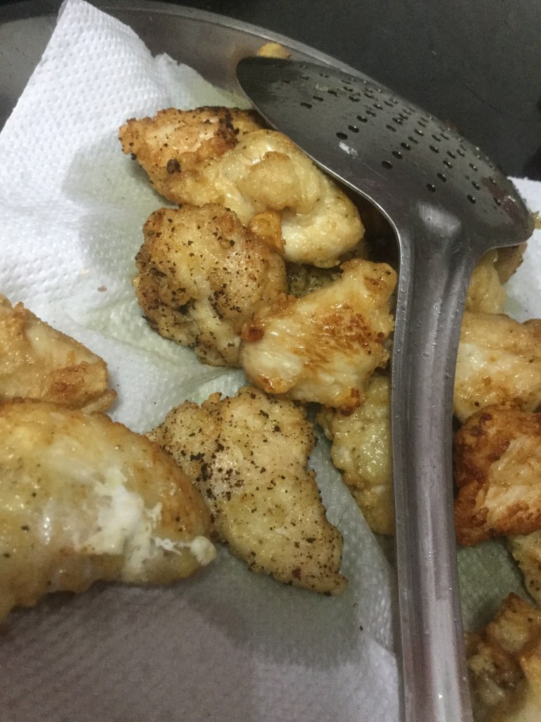 . Then fry these one by one in medium hot oil till they turn golden brown. They should have a nice coating on them or else the effect of chilli chicken would be lost.