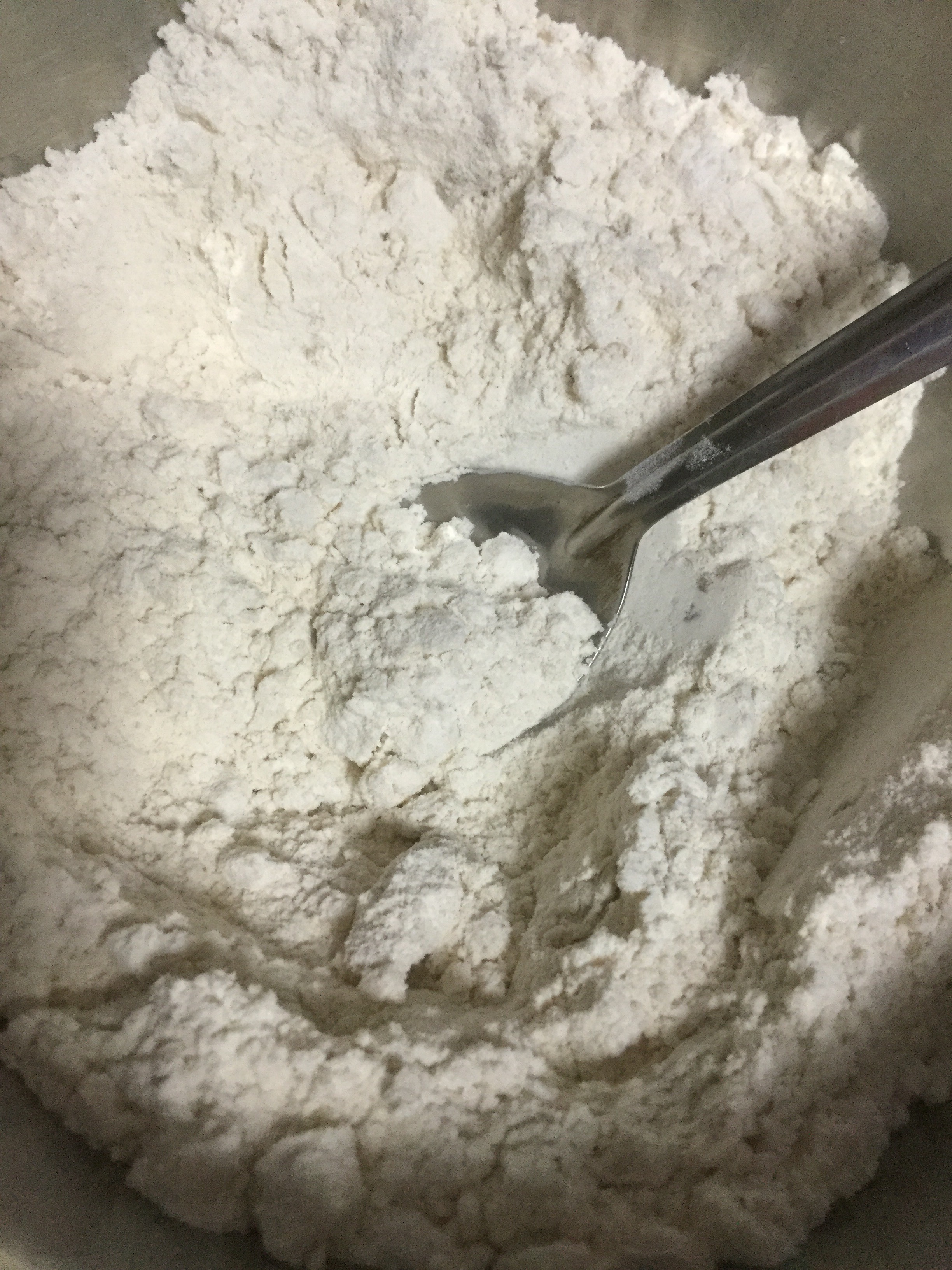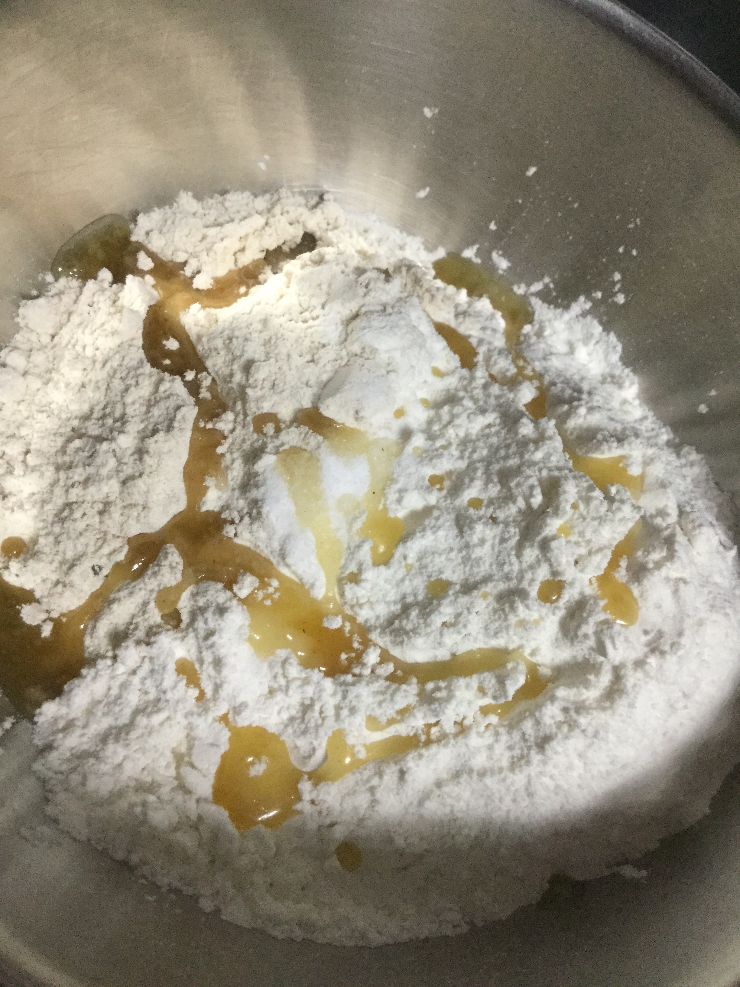 . Then add the oil. Mix it nicely with the flour and it should form tiny knots in them.