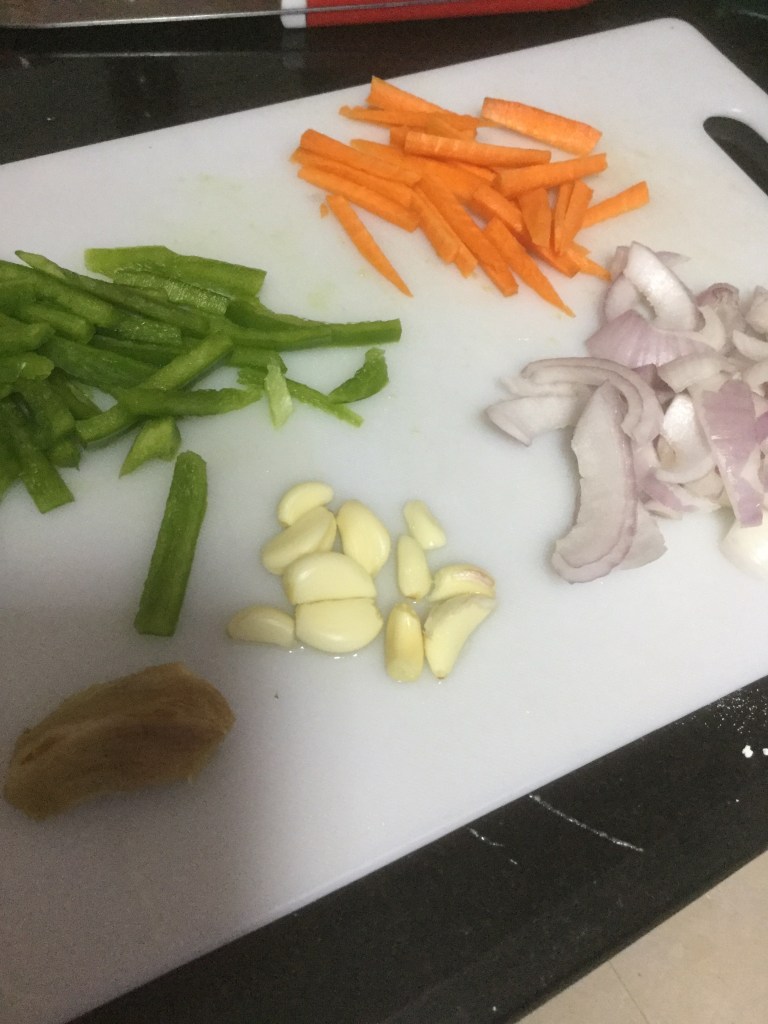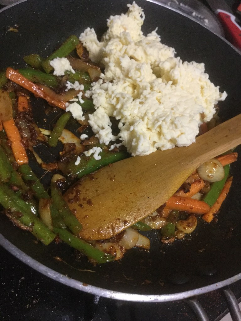 . Add in the capsicum and carrot and keep stirring till they are cooked.