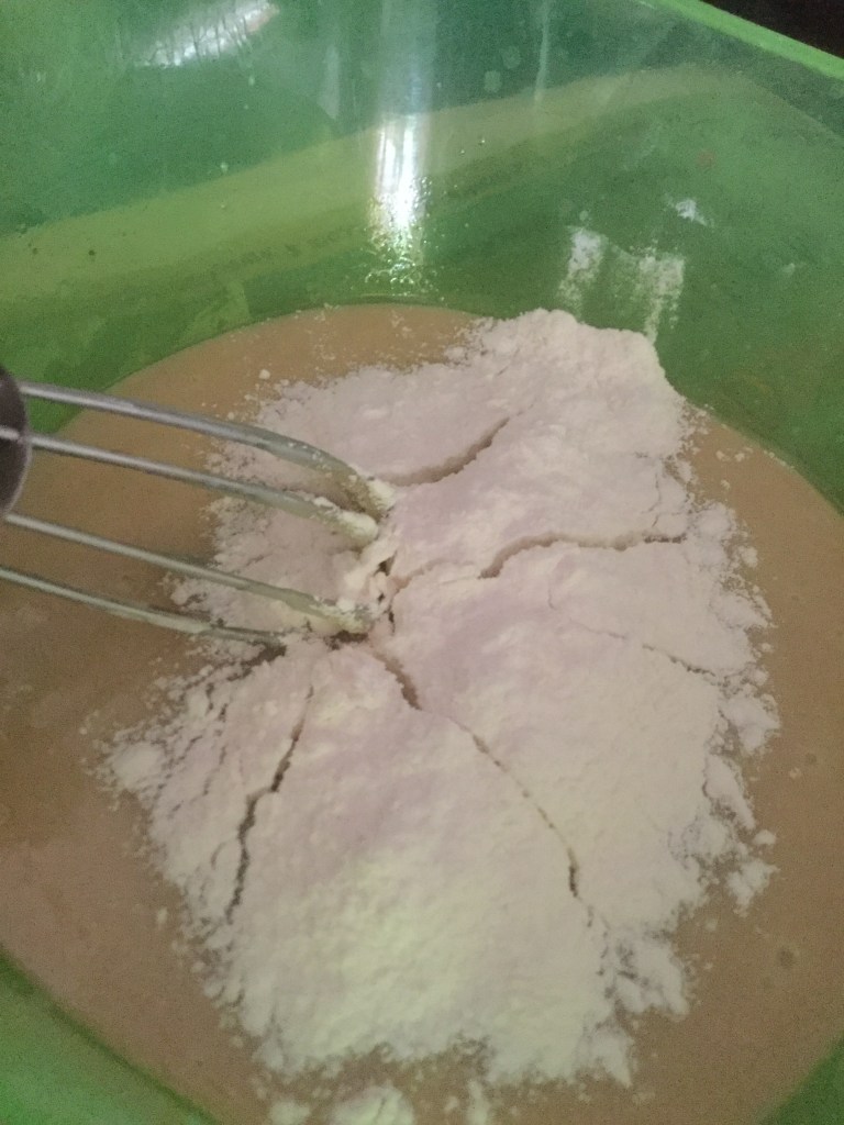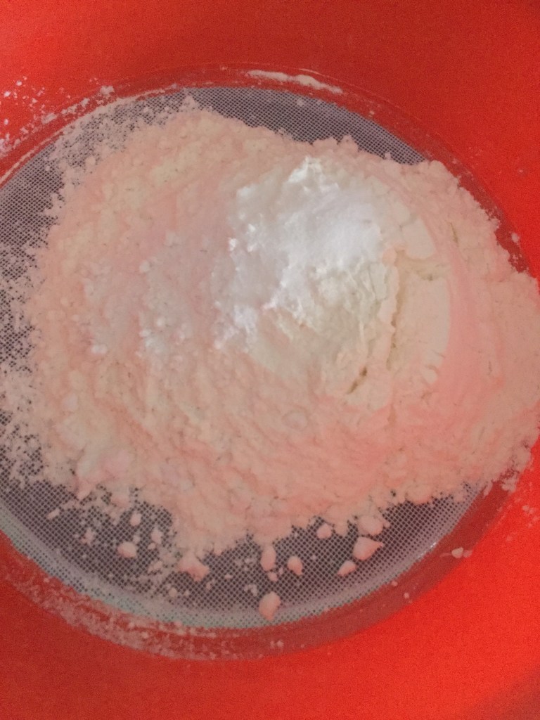 . When it’s all combined, sieve flour, baking powder and soda in another bowl. The trick to get the fluffiest cupcakes is to sieve the flour at least 2 times.