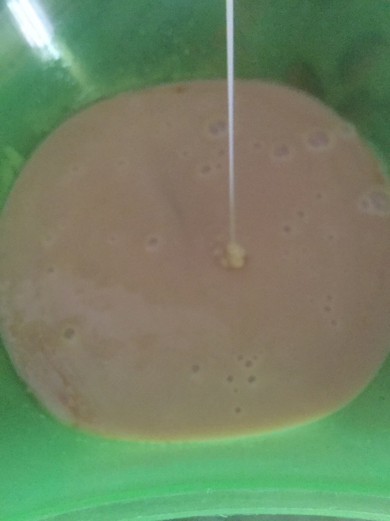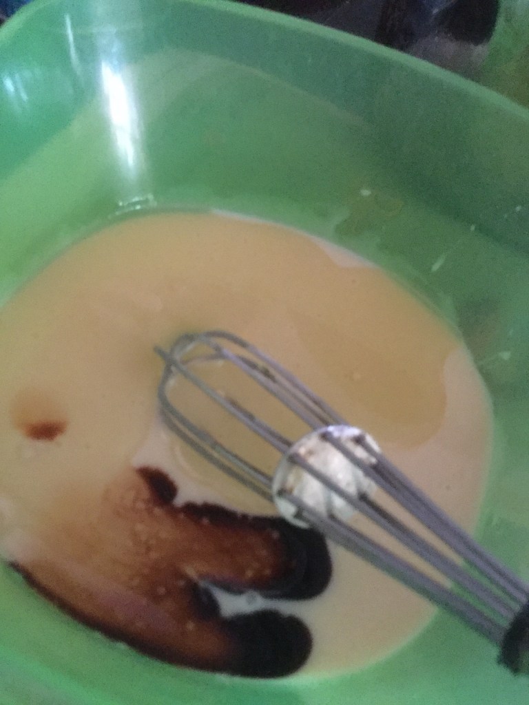 . First add condensed milk to a bowl and whisk it with sugar if you’re using, vanilla and oil.