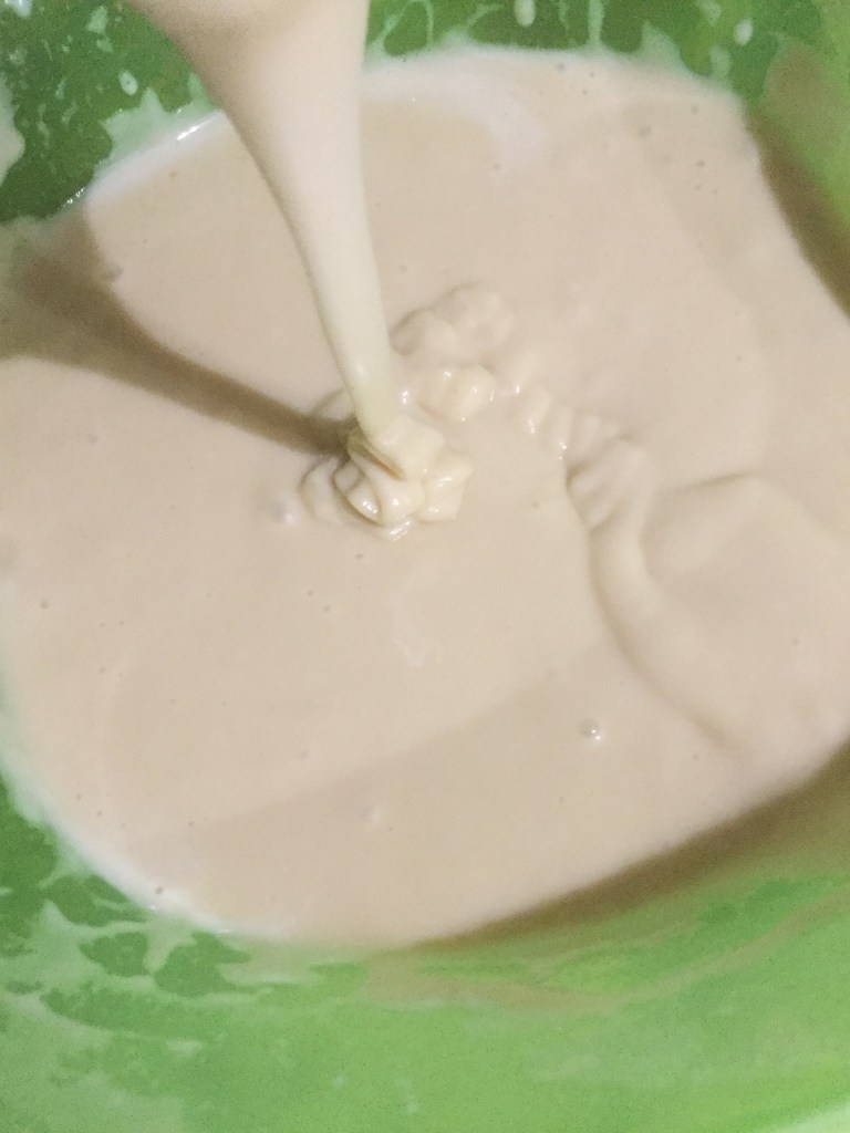 . We need a flowy batter which is another trick to get spongy and light cupcakes. When we make brownies, the batter is very thick which is why they become dense but that’s not what we want here.