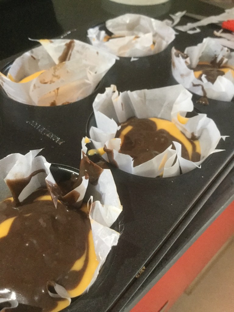 . Then, place the cupcake liners in the tray. Here I’m using homemade ones with butter paper. Preheat you oven at 170*C for 10 minutes.