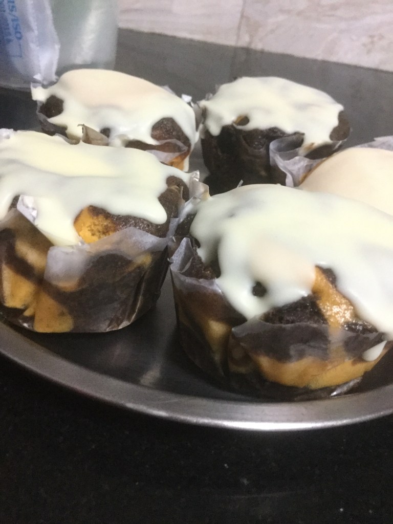 . Melt the white chocolate and pour it on top of each cupcake. Make sure that it’s not too uniformed or else it would loose the Halloween feel.