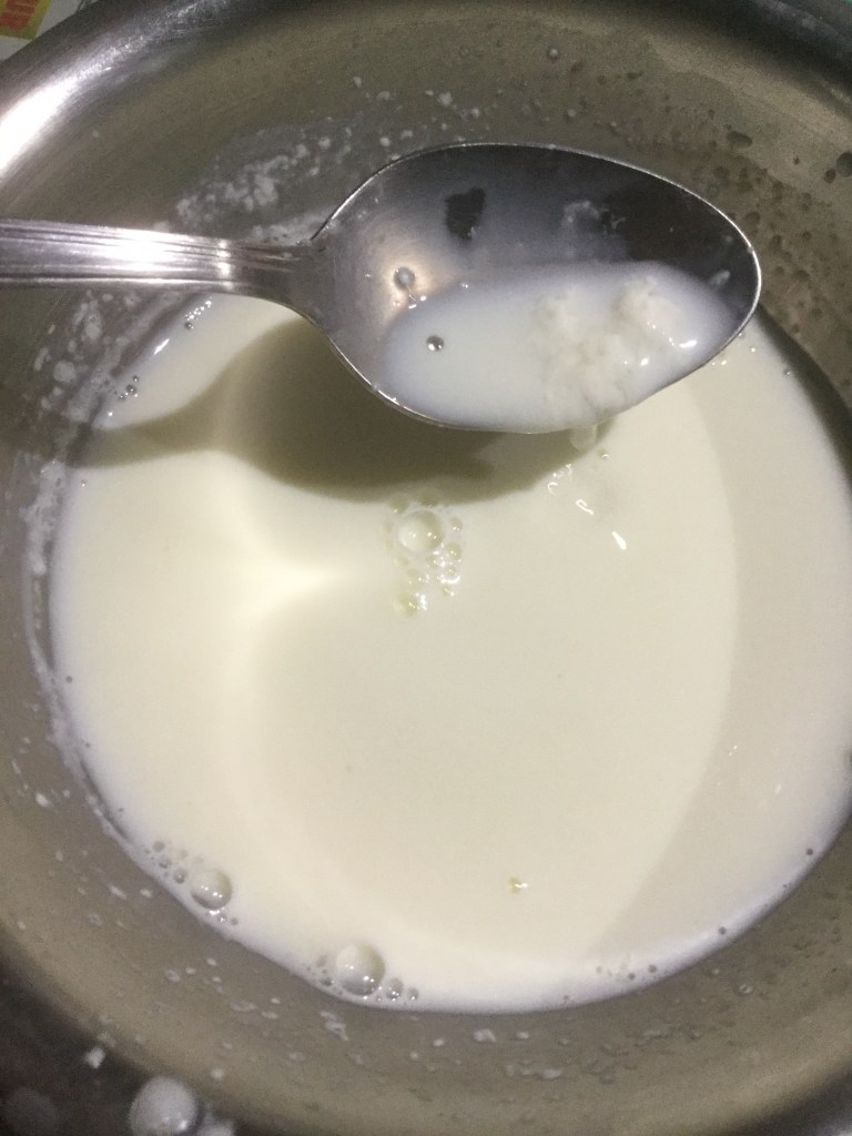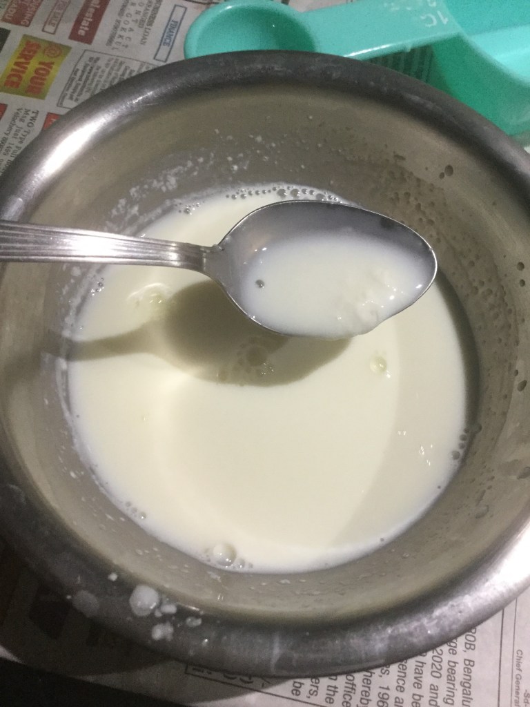 . First, add milk to a bowl and then the vinegar, make sure that the milk is lukewarm. Stir it nicely and let it sit for 5 minutes.