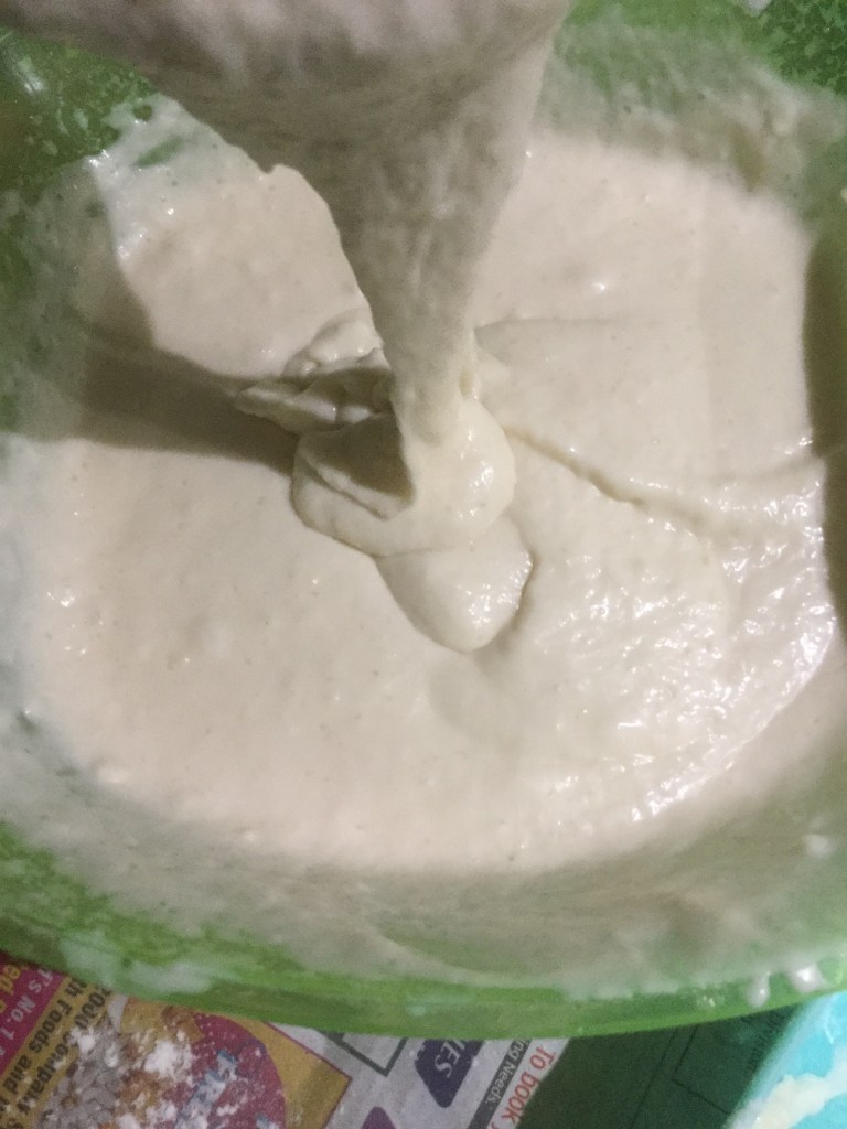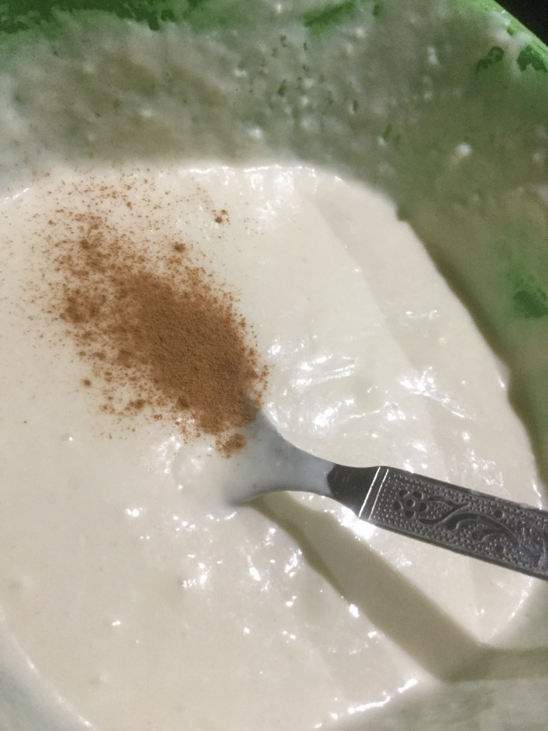 . Mix it nicely and add more milk a s required to make a smooth batter. The batter should be a litttle thick and should fall off in intervals. Then add the cinnamon to this and give it a good mix.