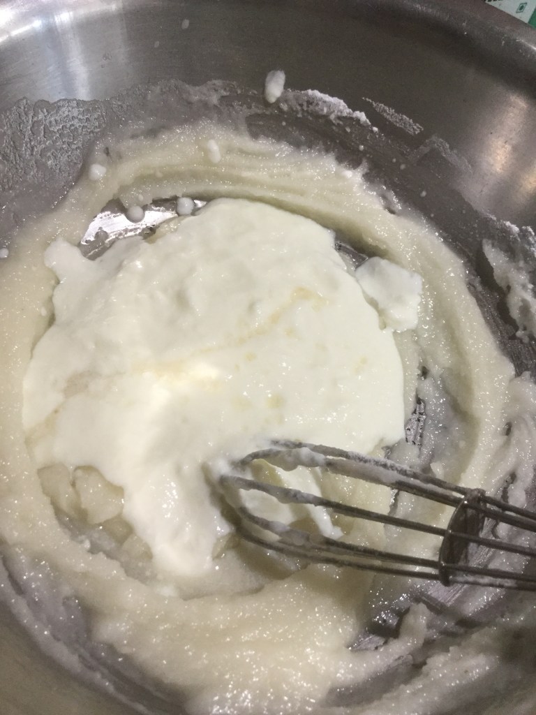 First, whisk together sugar, oil and vanilla. Then add in the curd and mix well.