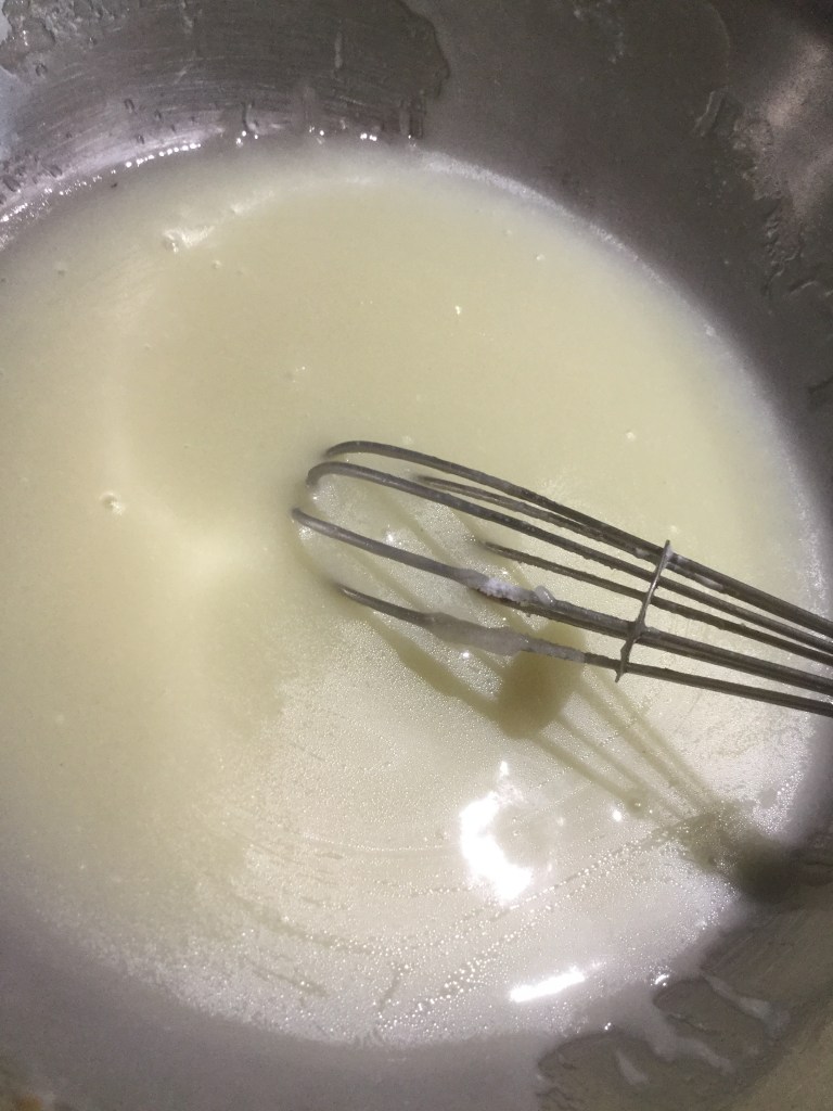Then add cream to it and mix well. Heat until fully melted and stir well.