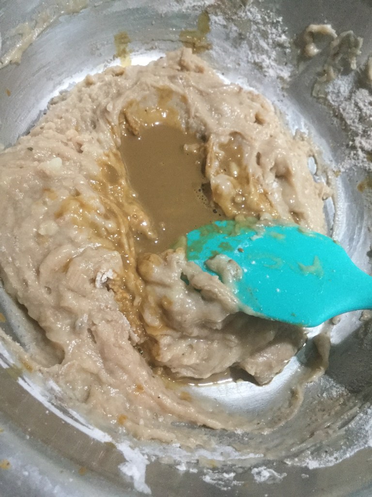 Now, sieve in flour baking powder and soda. Once it is done fold in the dry into wet ingredient gently.