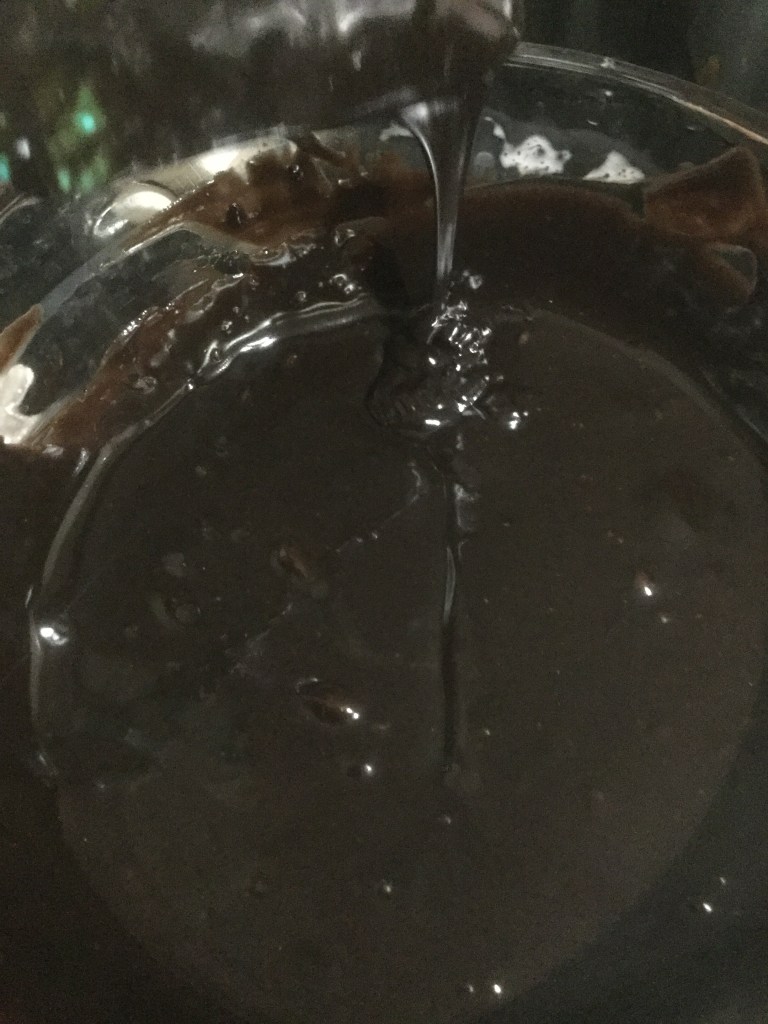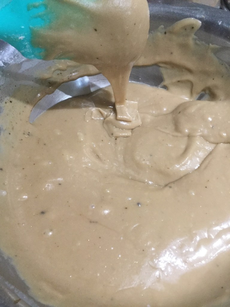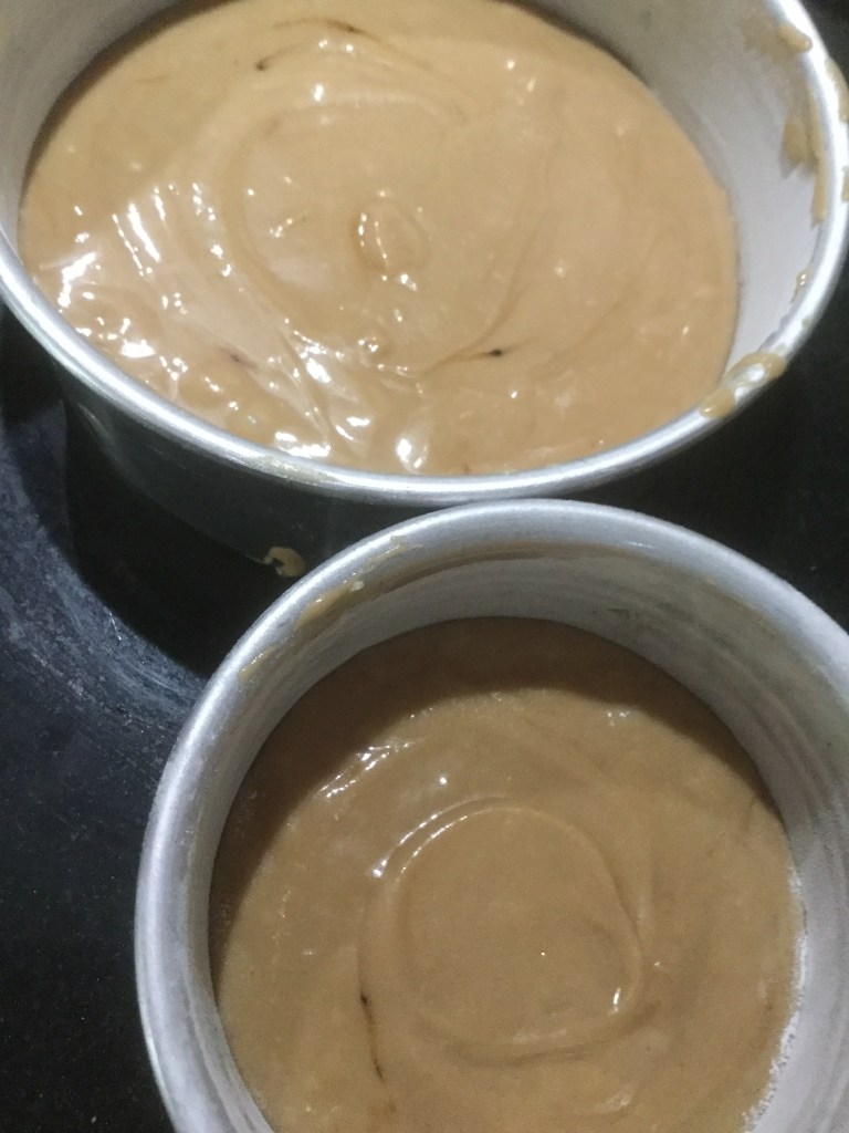 Add the coffee and mix well. Now add milk as required to make a smooth batter. Add these in both the tins that are oiled and dusted with flour. I am using 6 inch and 4 inch pans.