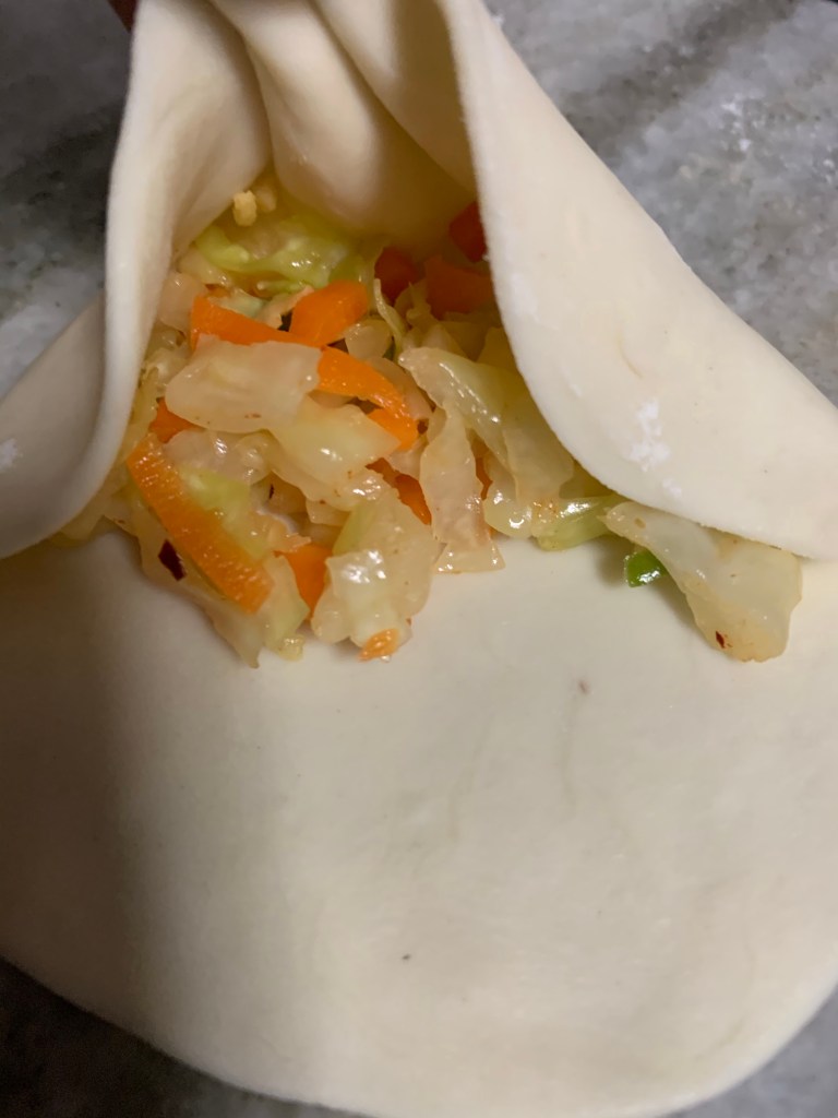 Then, brush some oil and let it rest for 30 minutes. On the other hand, cut and shred the above mentioned vegetables to a bowl. Add 1 tbsp oil and mix well. This will make sure that the stuffing doesn’t form a dough.