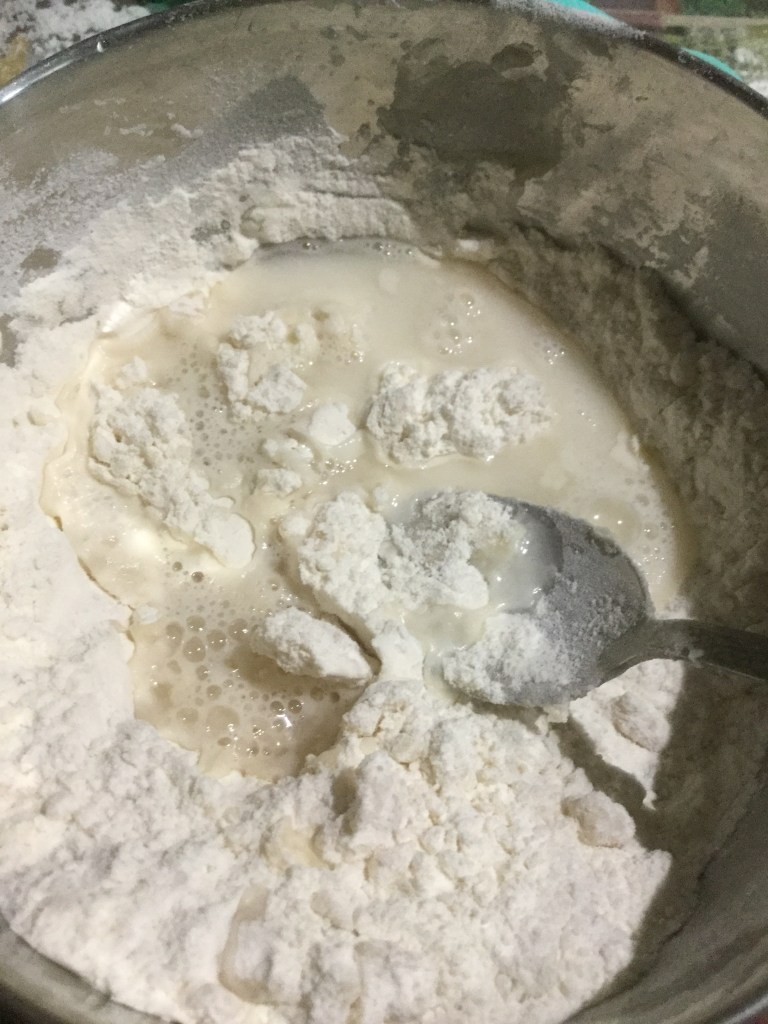 Then, add water slowly to make a soft dough. Mix in the water slowly and make a smooth, soft dough while continuously kneading.