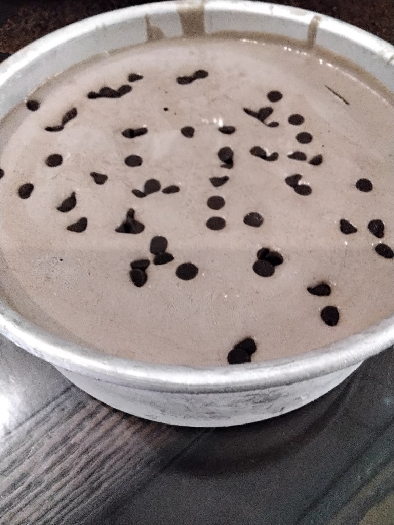 Cover with foil and freeze for 16-20 hours. Once done, serve with a sprinkle of chocolate chips!
