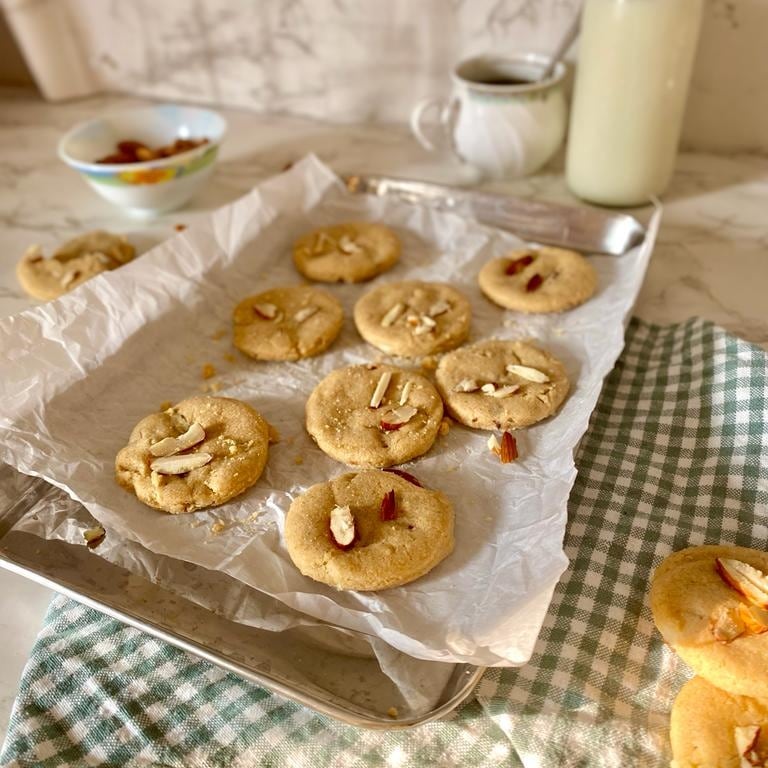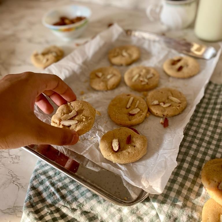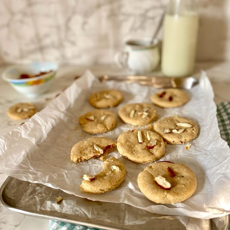 You could also use almond essence but I feel that the flavour is too overpowering and natural almonds give a nice crunch and flavour.